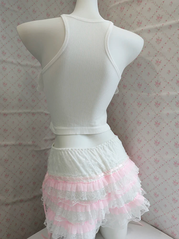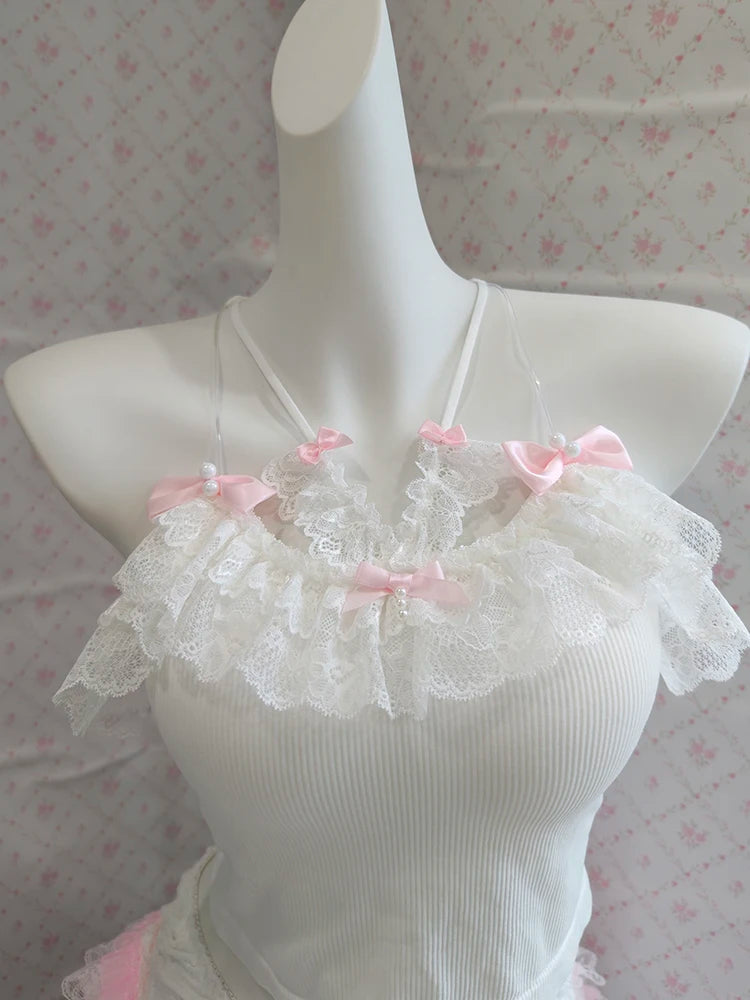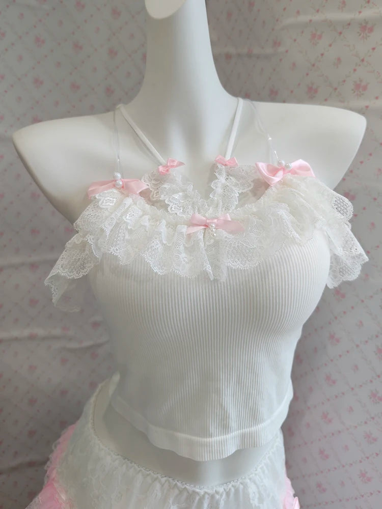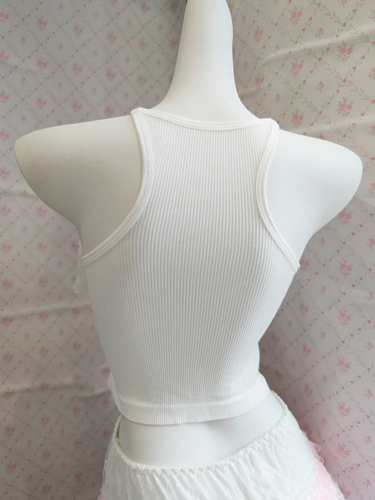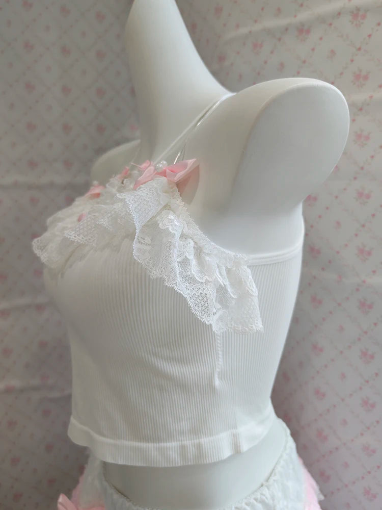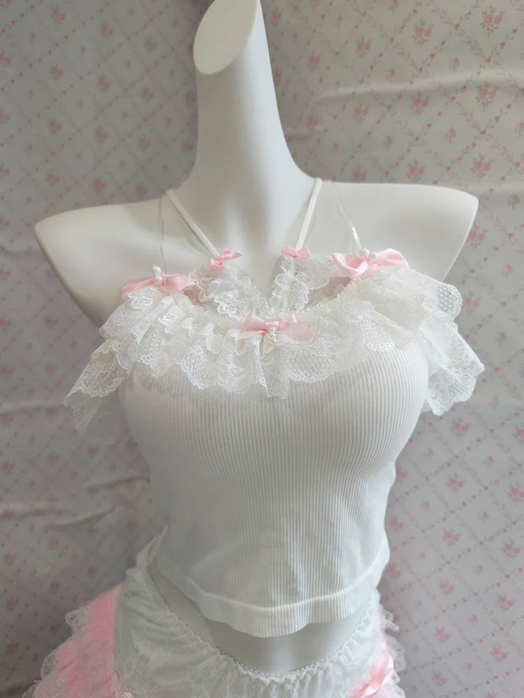 ♡ Design: White cropped cami with slim fit and adjustable straps, optional matching shorts