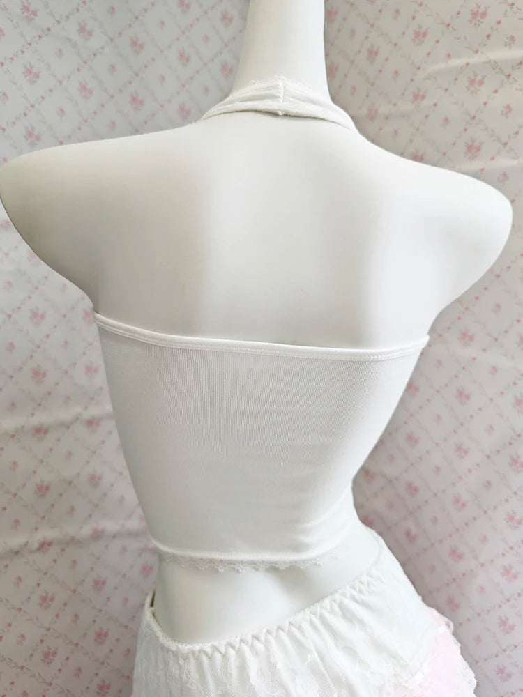 A flirty little halter with the sweetest doll-like twist! This cropped pink top features a backless cut and delicate bow details—wear it solo or as a matching set with the comfy shorts for an effortlessly cute look.