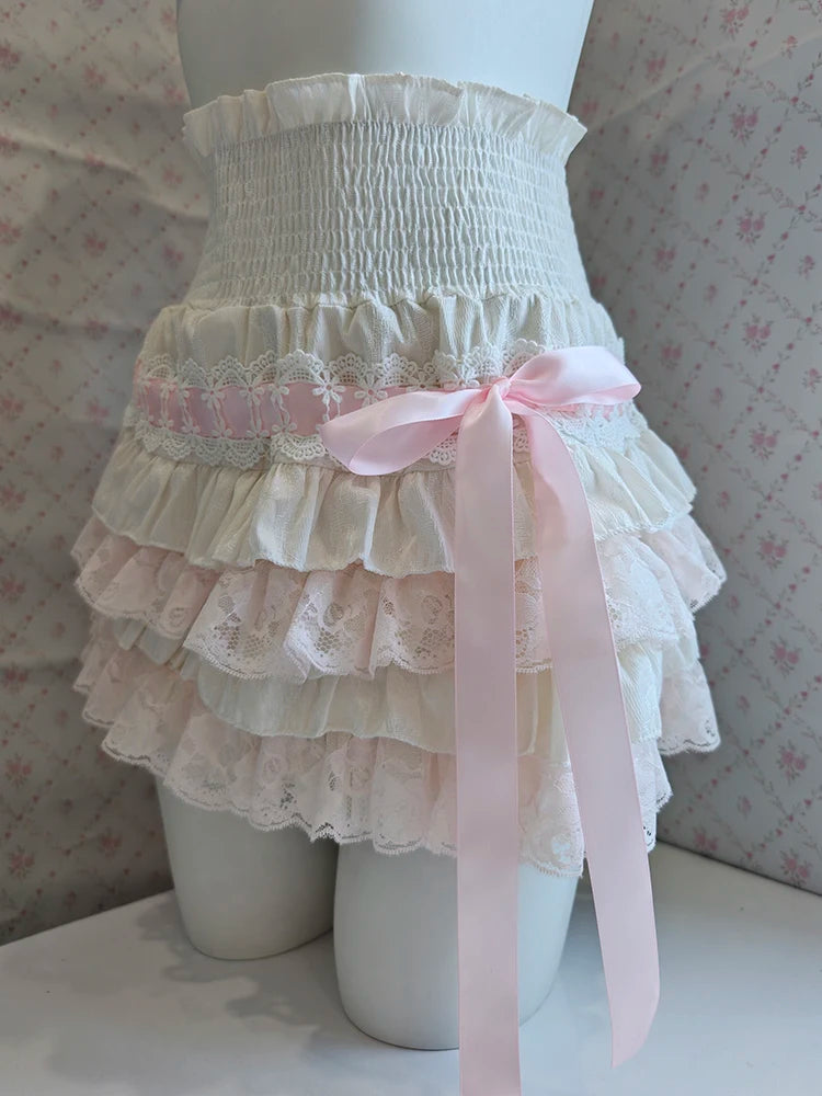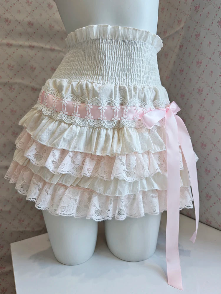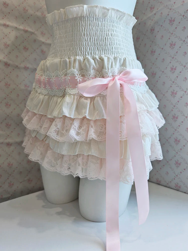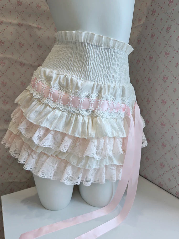 ♡ Design: Mini A-line skirt with layered lace and hidden shorts underneath