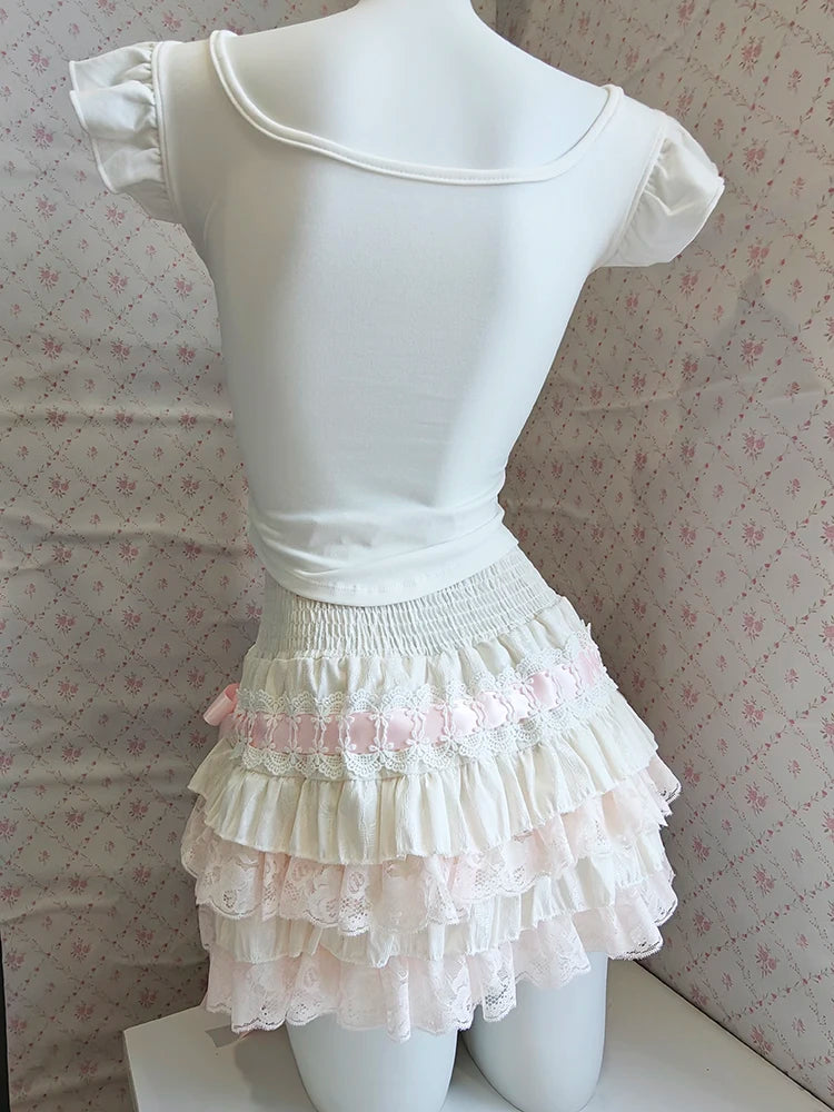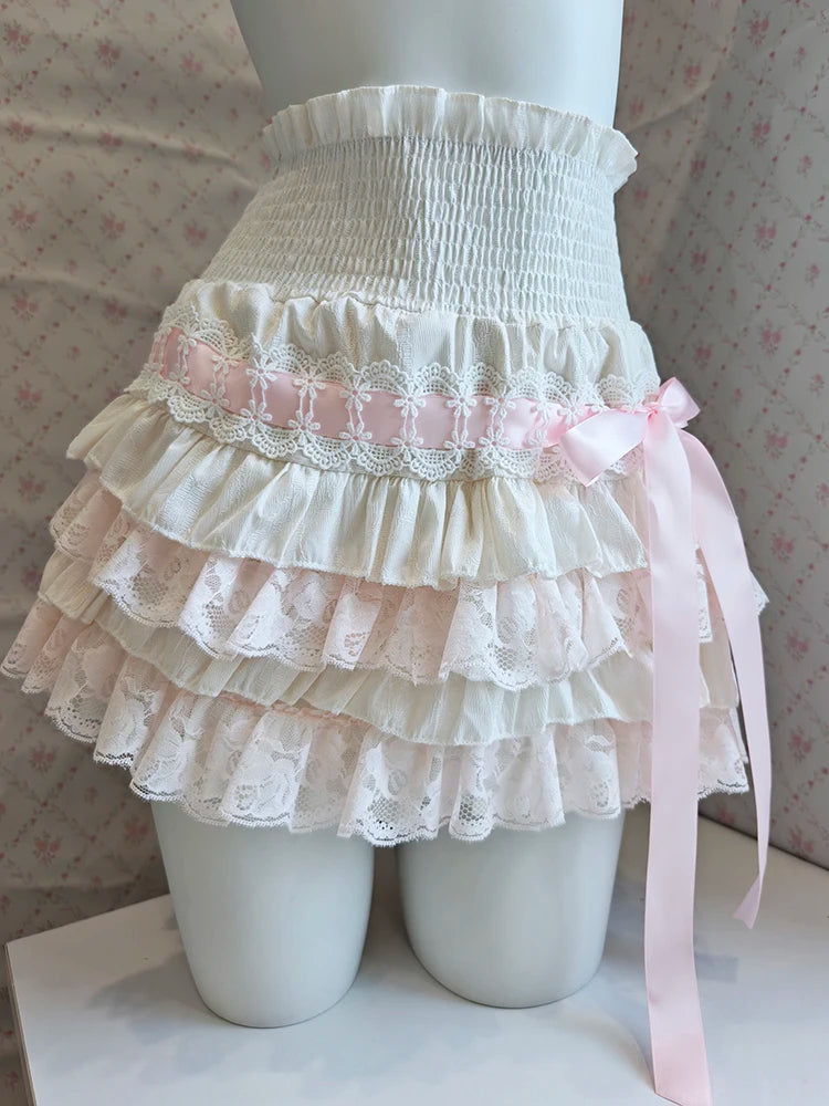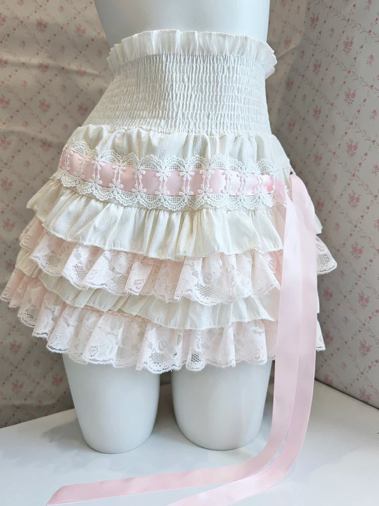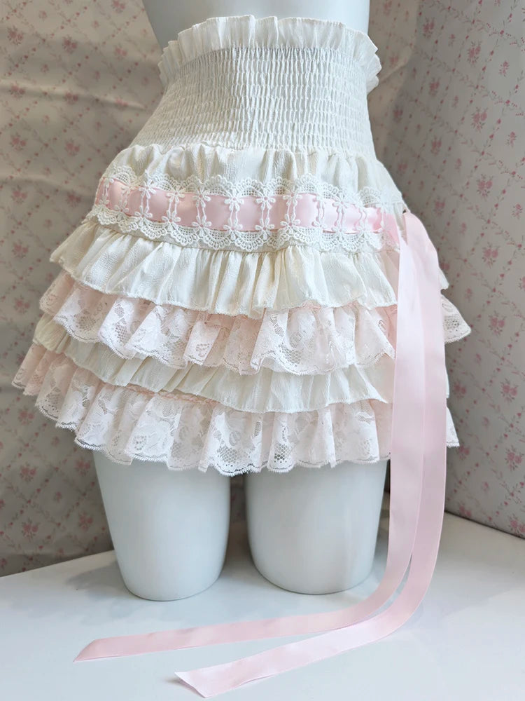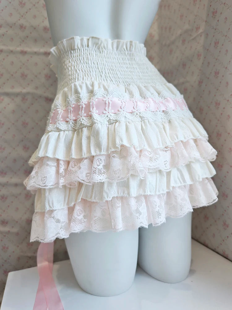 ♡ Design: Mini A-line skirt with layered lace and hidden shorts underneath