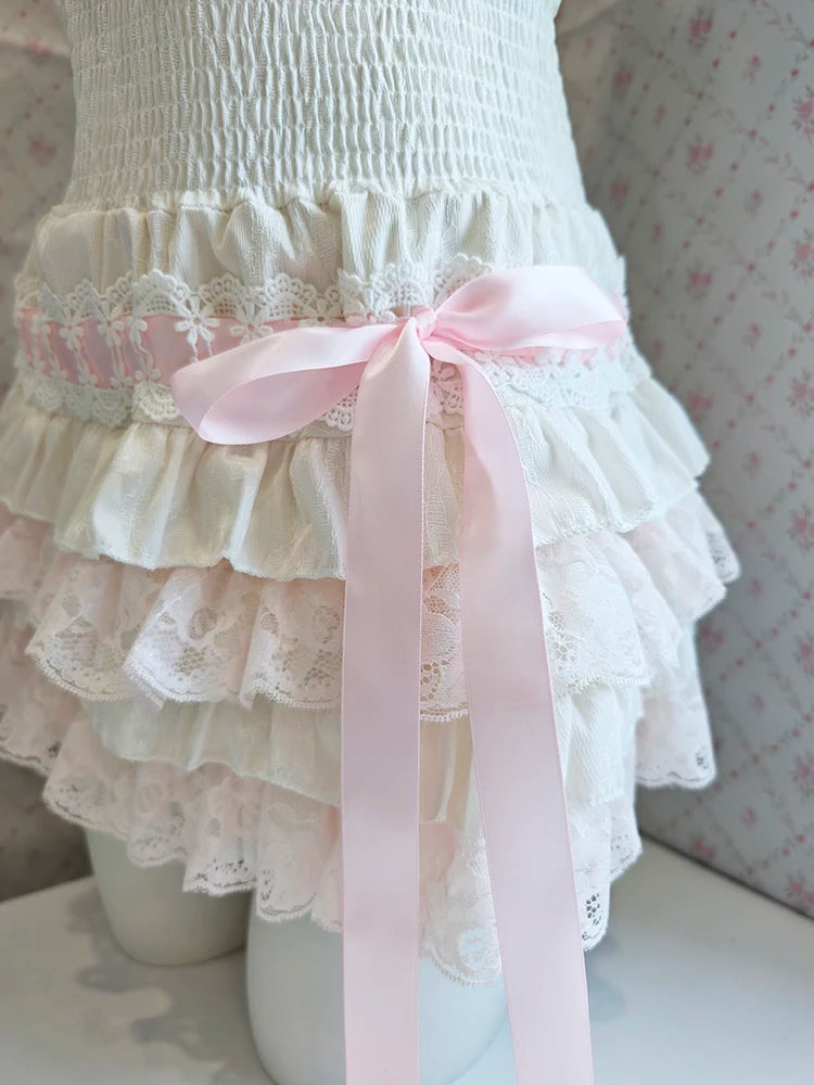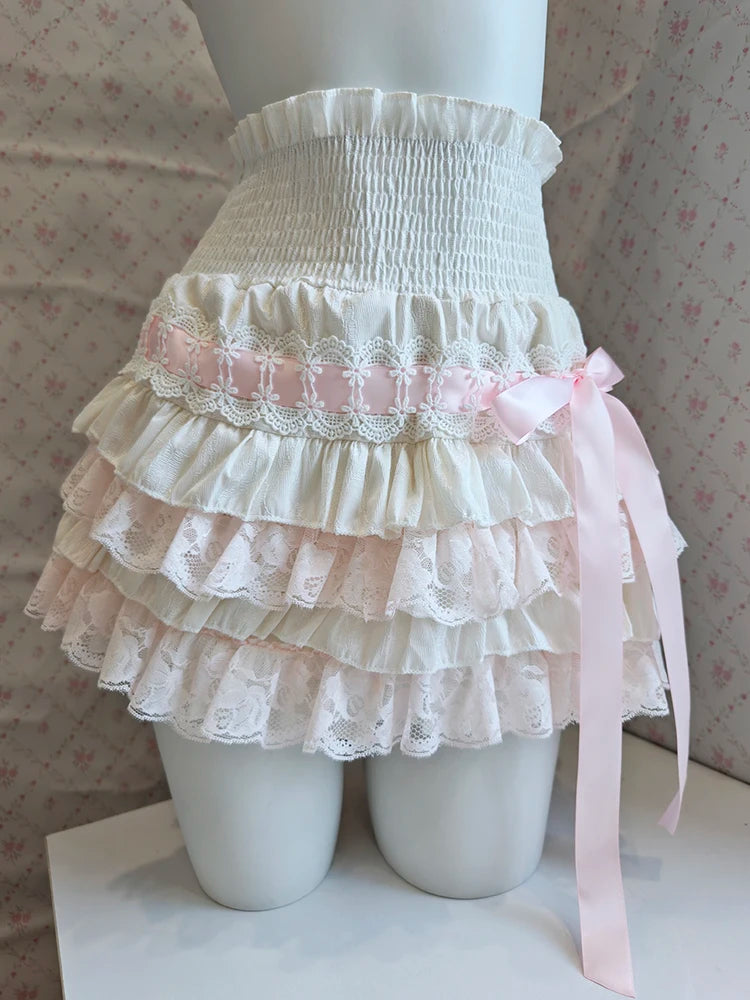 A dreamy little lace skirt with a sweet layered look! Designed with a soft A-line shape, bow detail, and built-in shorts, it’s perfect for doll-like outfits with extra comfort and coverage.