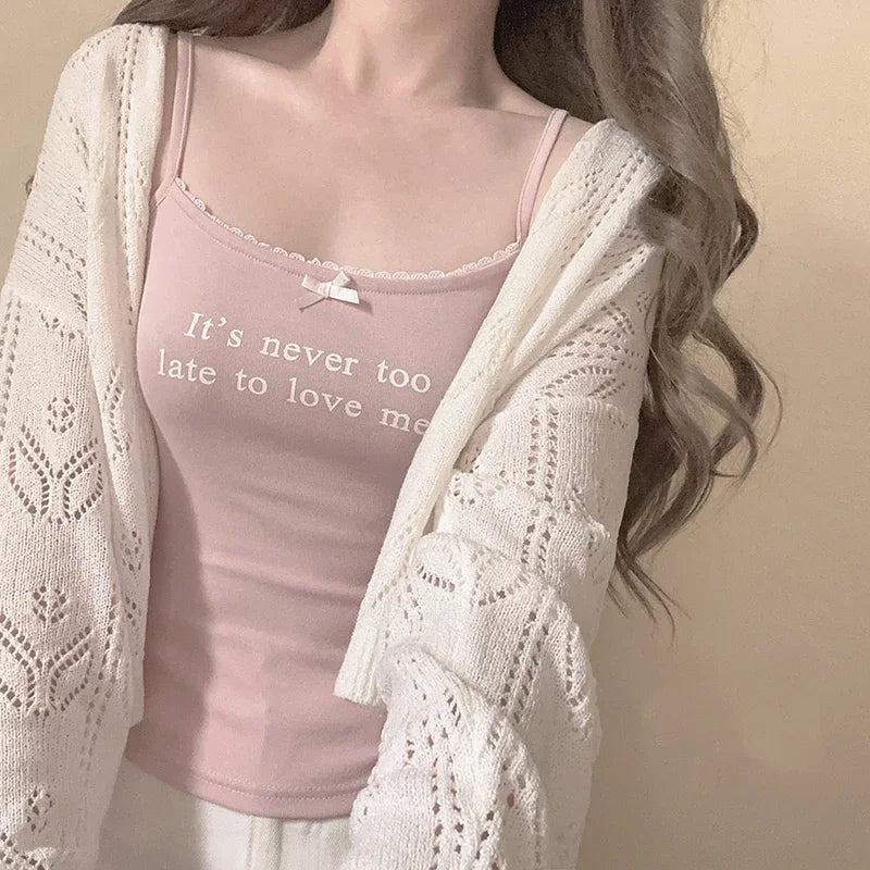 Bring on the summer cuteness with this adorable crop top! Made from a soft cotton-spandex blend, it’s super comfy and stretchy. Sweet bow details and a playful letter print make it perfect for kawaii girls!
