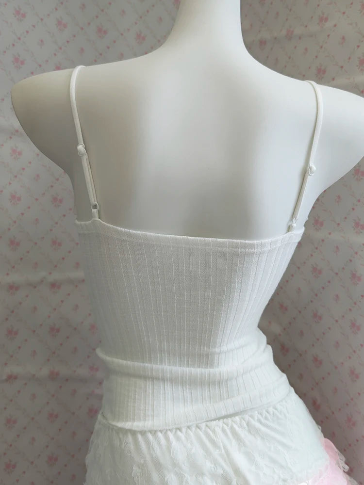 ♡ Design: White cropped cami with a classic silhouette and adjustable straps, available with matching shorts