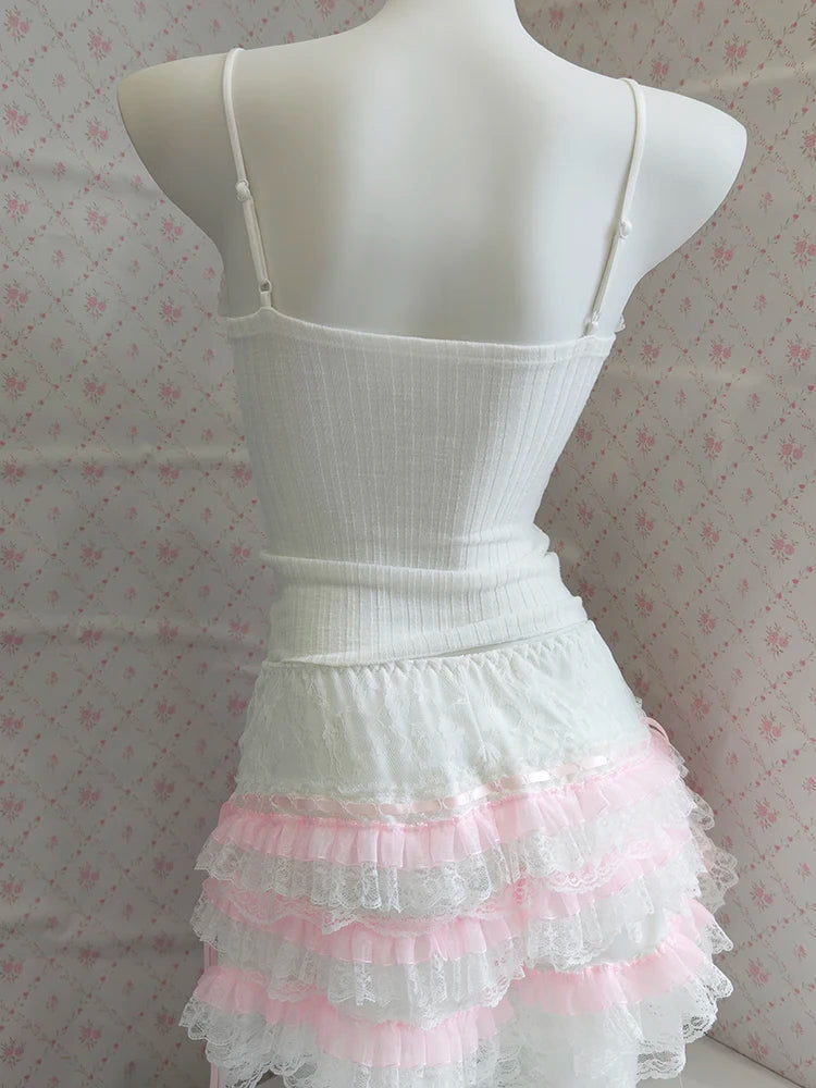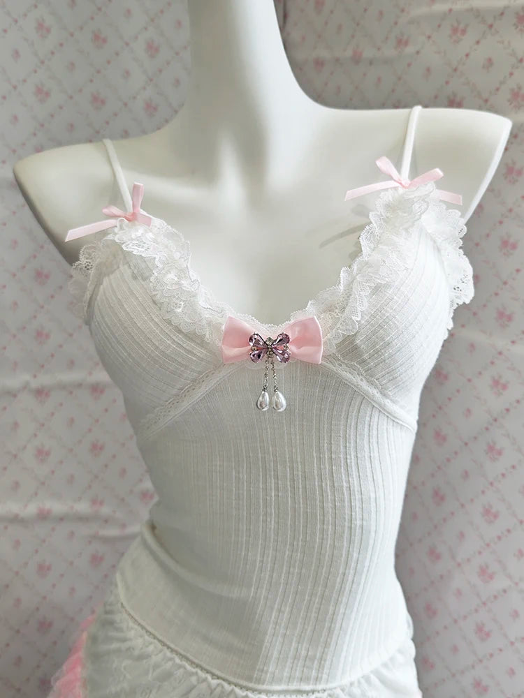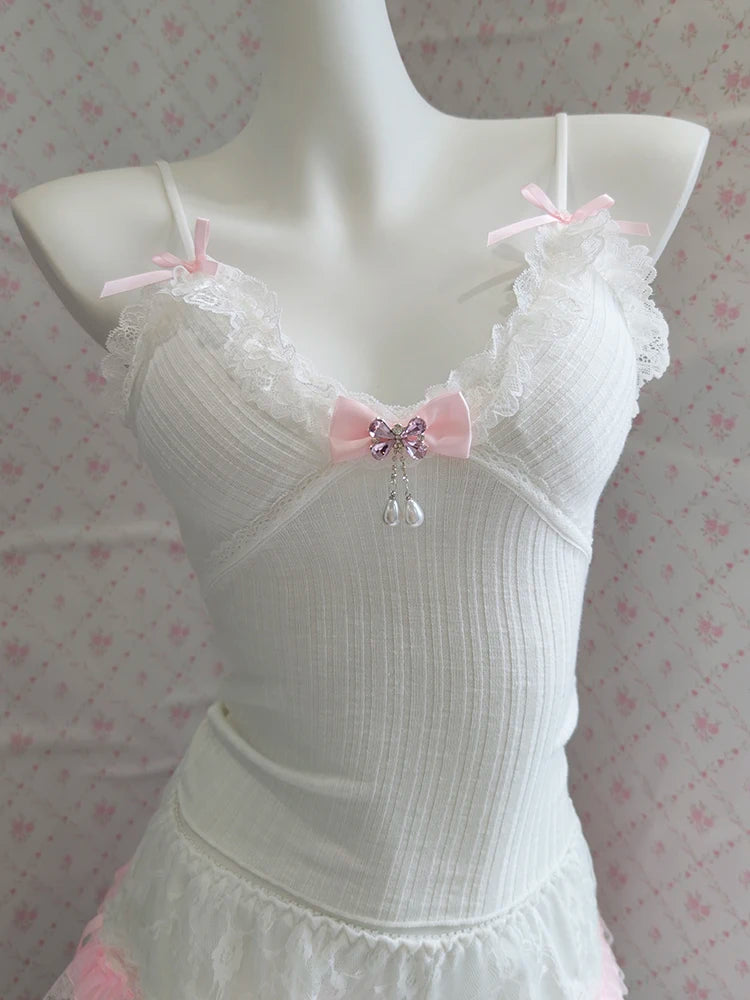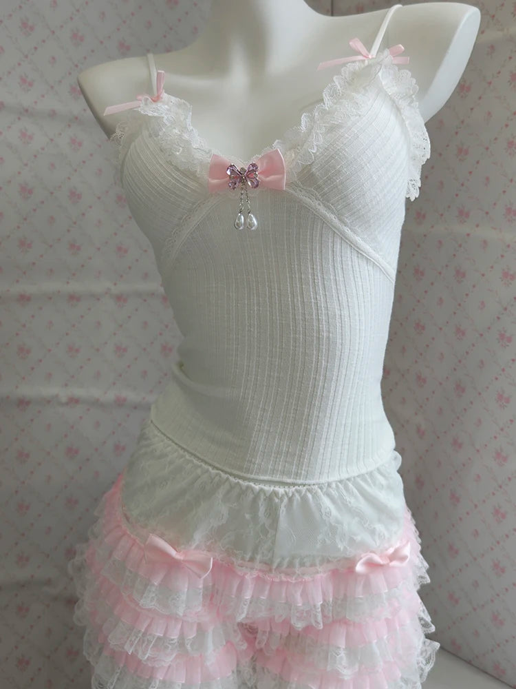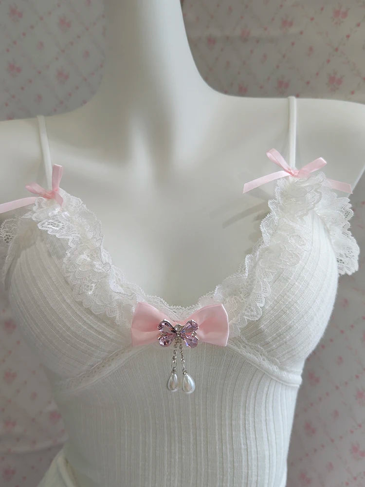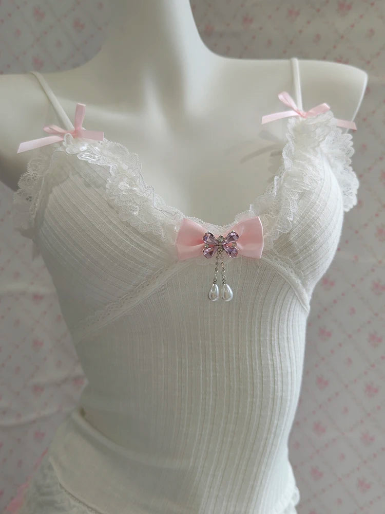 ♡ Details: Tiny bows, lace trim, soft knit texture