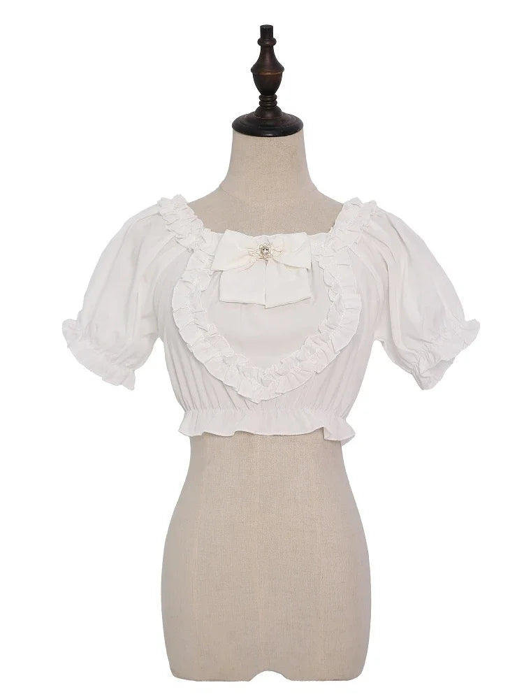 This chiffon blouse is the definition of soft and sweet! With delicate puff sleeves, a cute bow detail, and a lightweight feel, it’s perfect for a dreamy Lolita-inspired look. The super-short length makes it ideal for layering over dresses or pairing with high-waisted skirts for that effortless kawaii aesthetic.